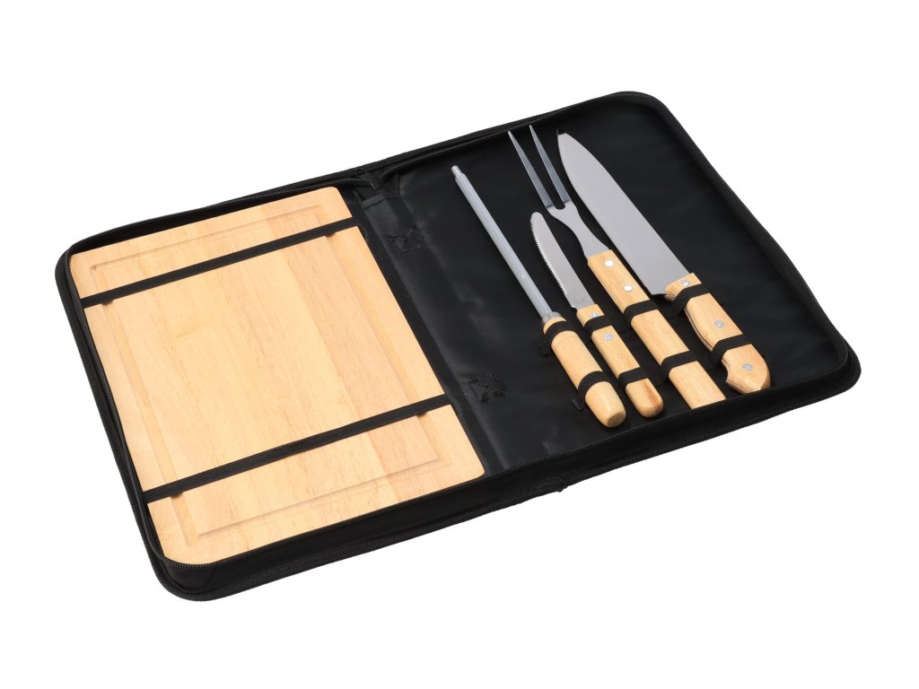 Ob der Sommer nun beginnt oder zu Ende geht, ein Grill-Set ist immer nützlich! 4 verschiedene Utensilien und ein Bambus-Schneidebrett erleichtern die Zubereitung und das Braten von Fleisch auf einem heißen Grill. Alles ist in einer schwarzen Tasche mit Reißverschluss verpackt, die sich bequem transportieren lässt.