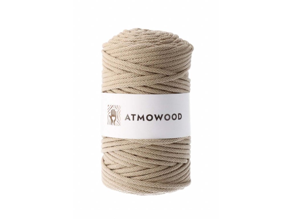 Atmowood-Garn hat einen Polyesterkern. Polyester hat eine geringe Wasseraufnahme, ist langlebig, elastisch, hat eine hohe Zugfestigkeit und das fertige Produkt behält seine Form.
