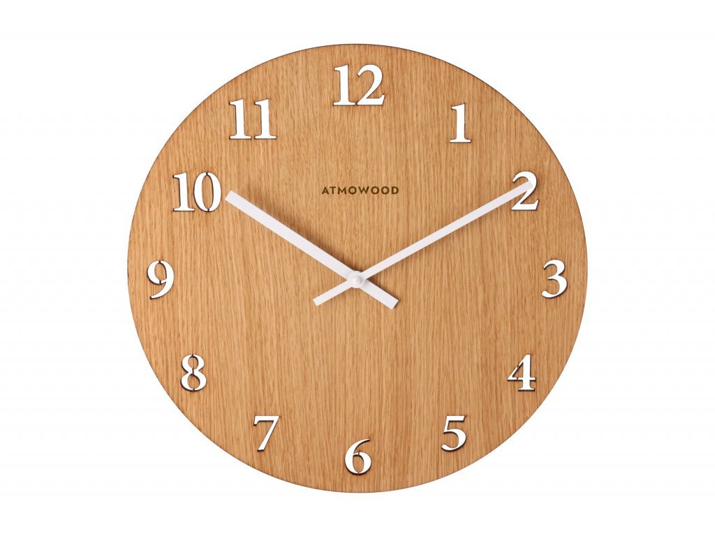 ATMOWOOD numerische Uhr aus Eiche 34 cm - weiße Zeiger