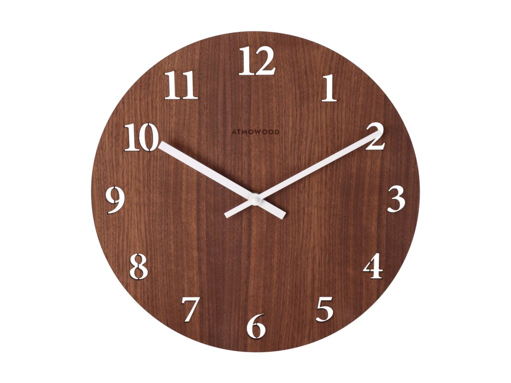 ATMOWOOD numerische Uhr aus Nussbaum 34 cm - weiße Zeiger