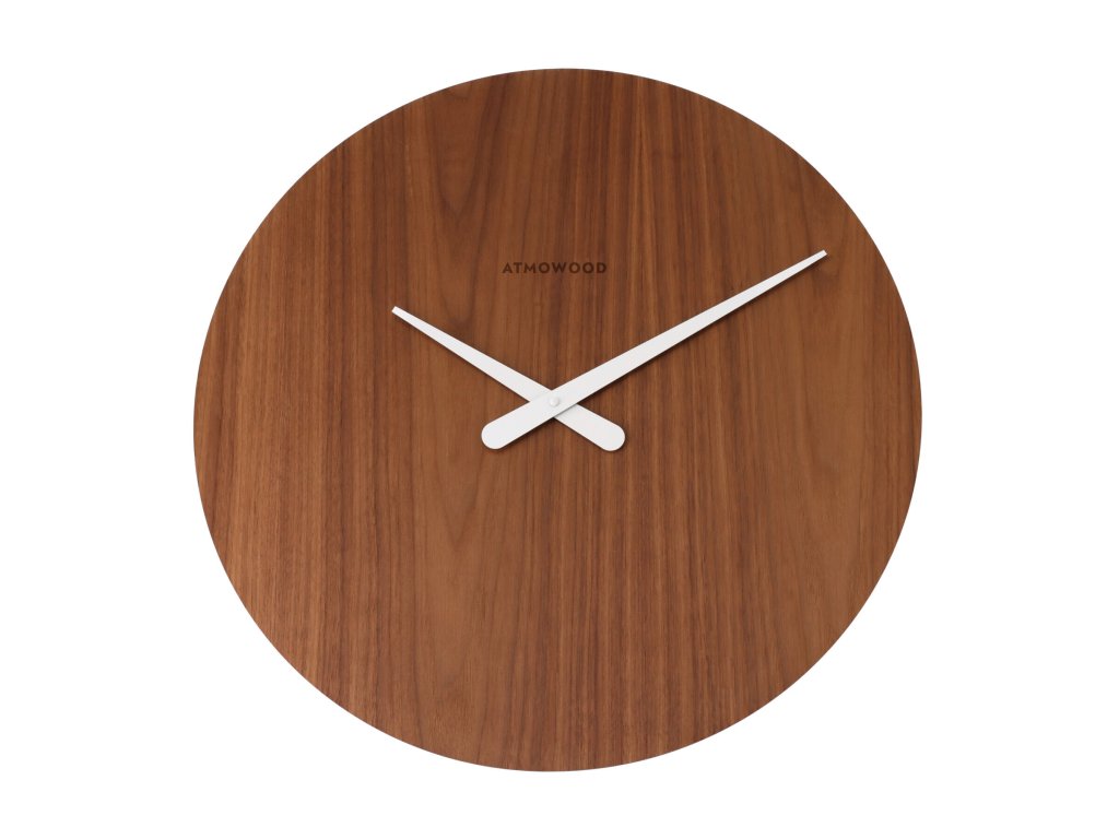 ATMOWOOD Uhr aus Nussbaum 50 cm - weiße Zeiger