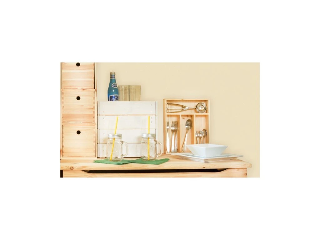 Der Holz-Organizer, der in eine Schublade passt, hilft Ihnen, Ordnung zu halten. Sie können Besteck, aber auch Kosmetika oder Schmuck darin aufbewahren.