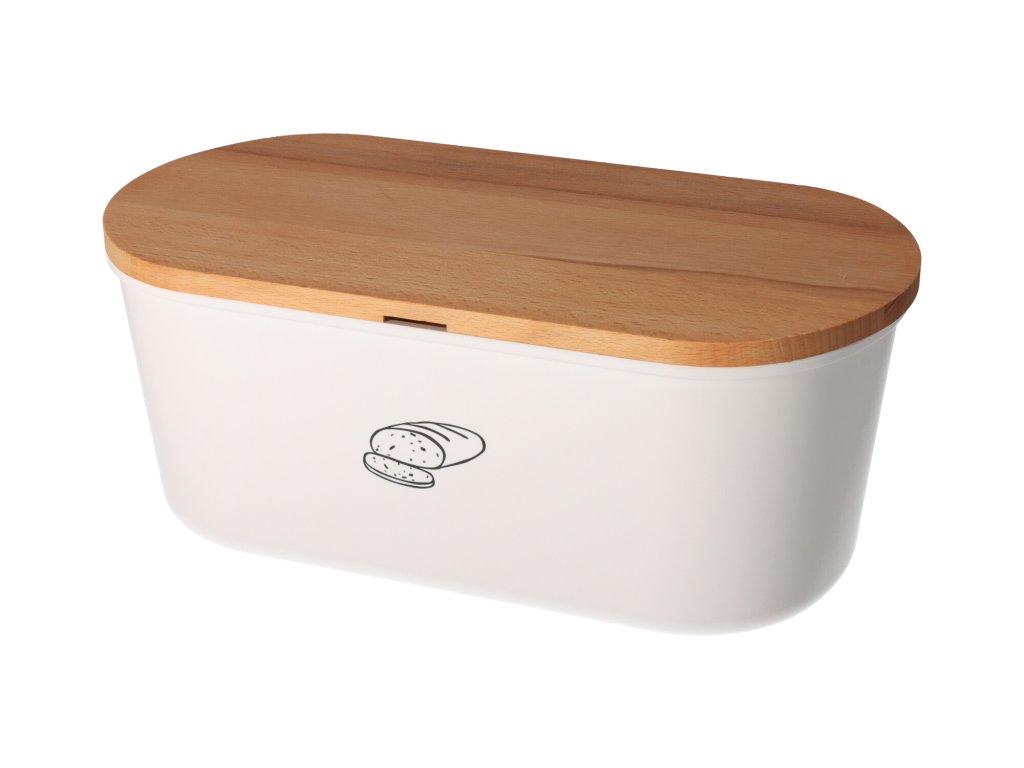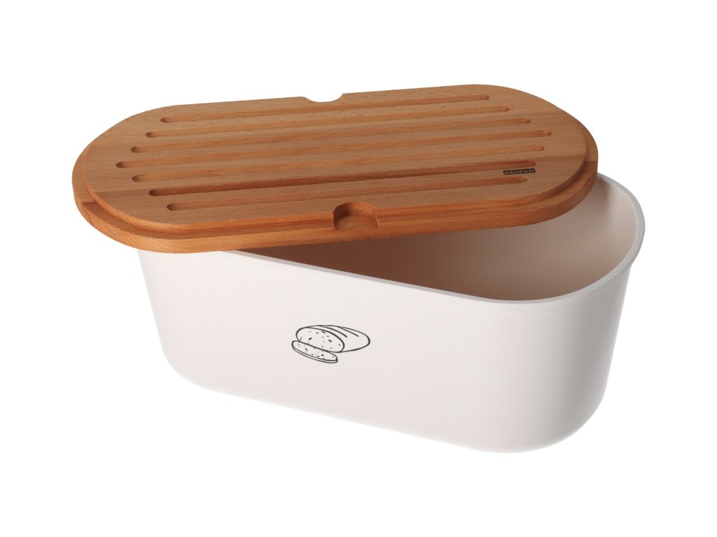 Der Brotbehälter mit Schneidebrett in elegantem Weiß wird das Innere Ihrer Küche perfekt verschönern. Der Deckel aus Buchenholz dient als doppelseitiges Schneide- oder Servierbrett.