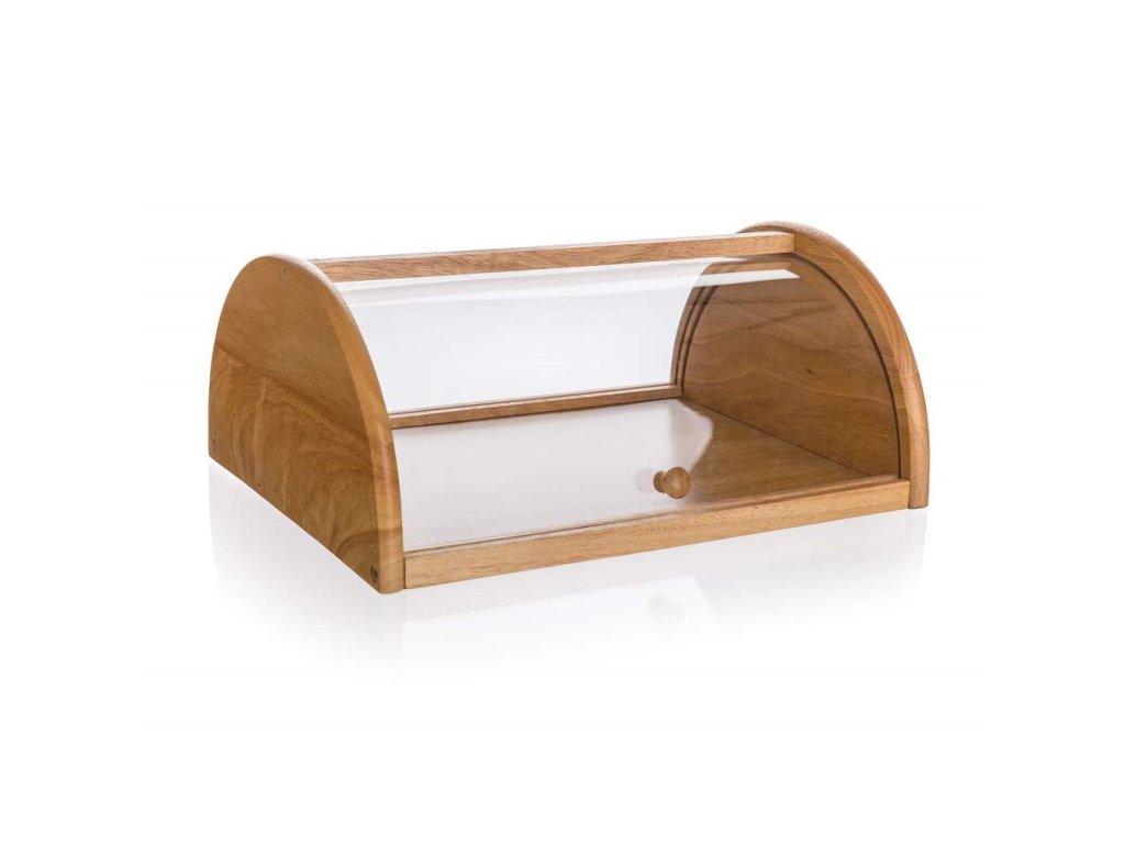 Der modern gestaltete Brotkasten aus Gummibaumholz hält Ihr Brot länger knusprig und frisch. Der Sockel ist aus Gummibaumholz und der Klappdeckel aus Acryl.