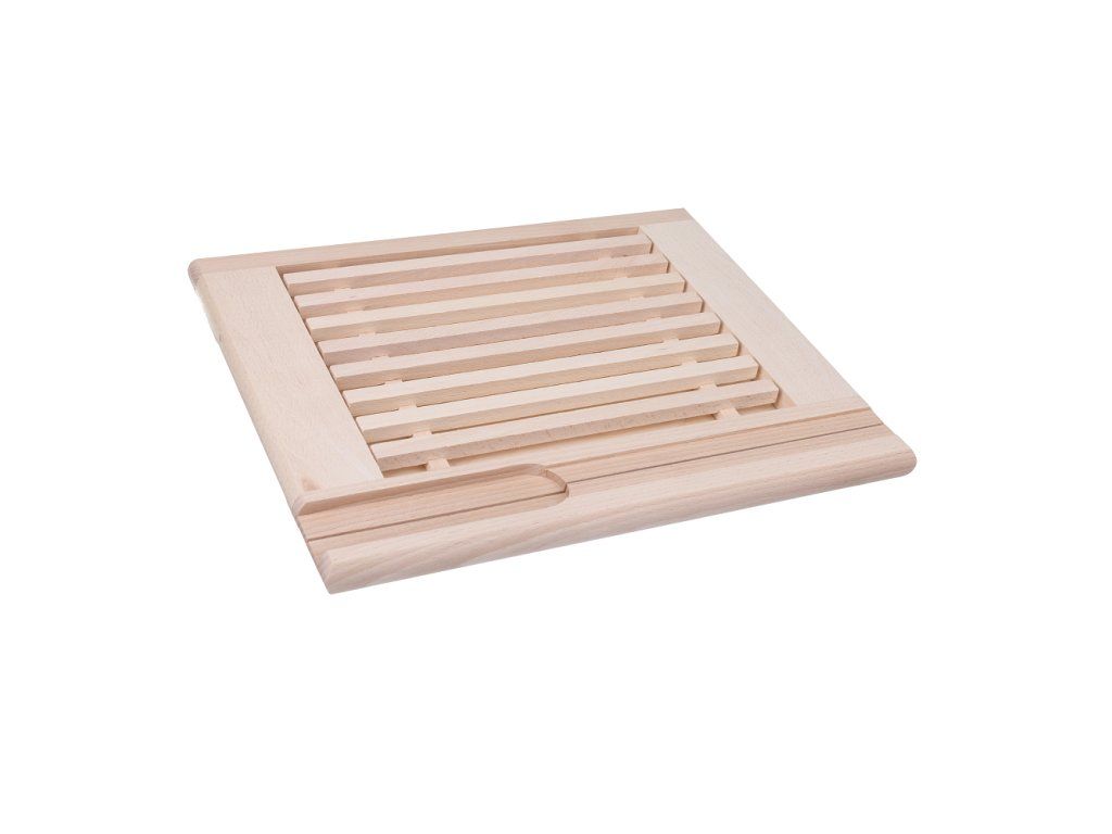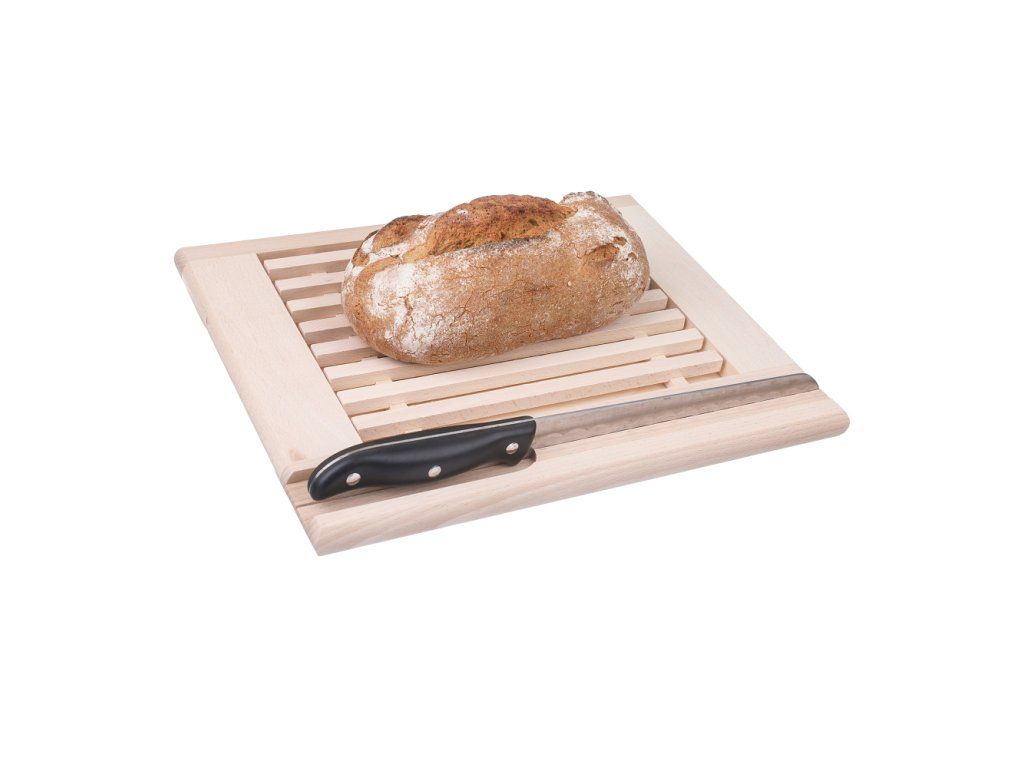 Das stilvolle und elegante Brotschneidebrett aus Holz verfügt über eine Messerablage und ein herausnehmbares Gitter, in das die Krümel beim Schneiden von Brot fallen.
