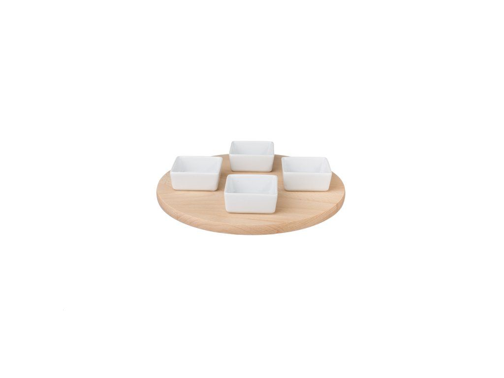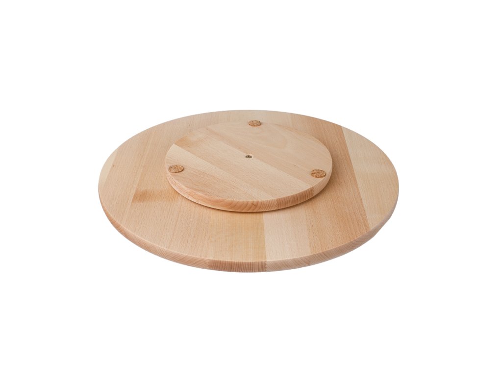 Das Servieren mit dem Buchenholz-Drehteller nimmt sich sehr originell auf dem Tisch aus und bietet allen Gästen Komfort beim Genuss sowohl salziger als auch süßer Leckereien.