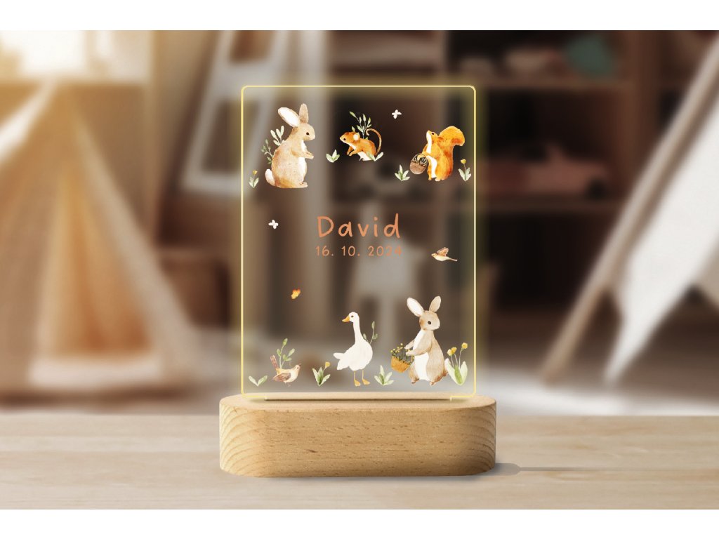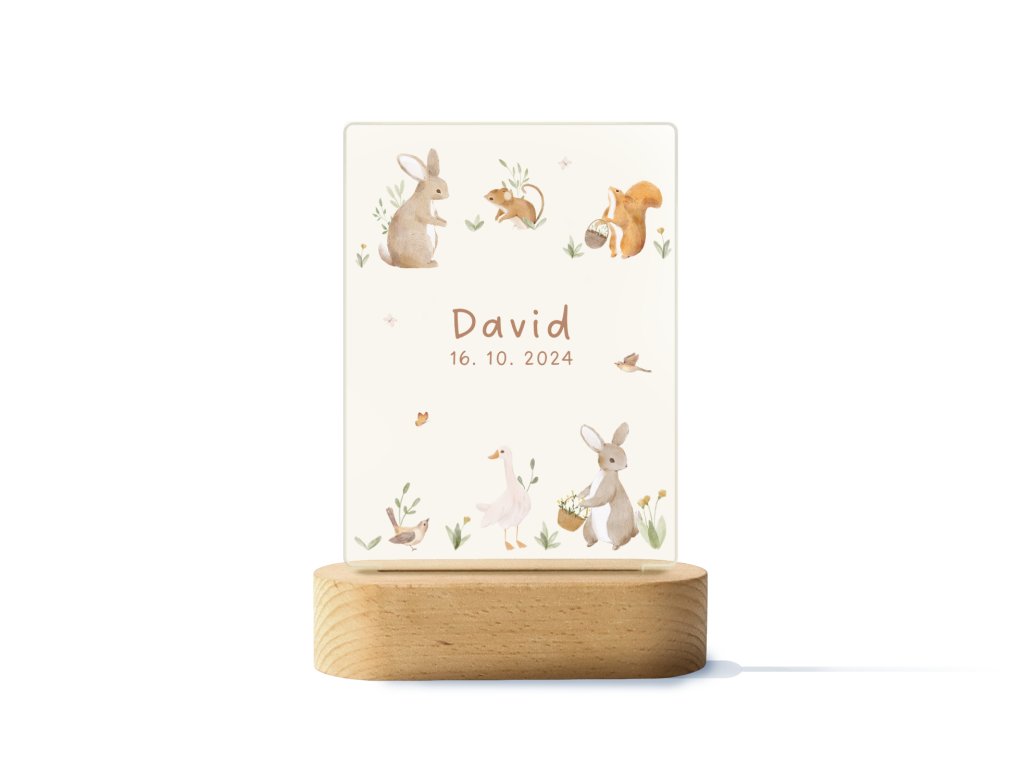Farbige LED-Lampe mit Namen - Waldtiere