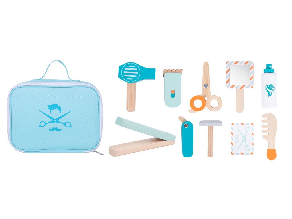 Ein Friseursalon im Kinderzimmer? Na klar! Mit dem Friseurset aus Holz können Kinder in die Rolle eines Friseurs schlüpfen und eigene Frisuren für Freunde, Eltern oder ihre Lieblingskuscheltiere kreieren. Das Rollenspiel fördert die Fantasie und sorgt für jede Menge Spaß beim gemeinsamen Spielen.