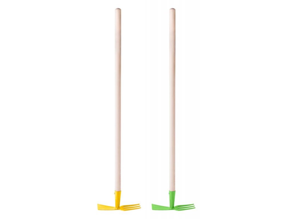 Der Griff ist aus massivem Holz, das Werkzeug aus massivem, lackiertem Metall gefertigt.