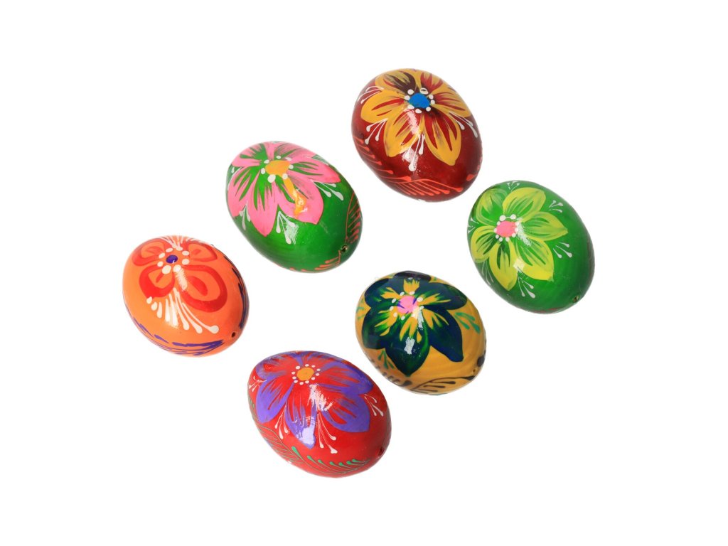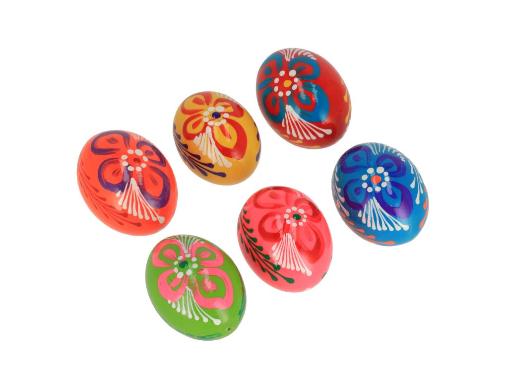 Hölzerne handbemalte Ostereier aus Buchenholz. Jedes Ei hat ein anderes , einzigartiges Design. Sie sind wunderschön gefärbt und passen perfekt in Ihr Osterkörbchen zusammen mit den anderen Eiern. Die Eier haben an der Unterseite ein Loch für ein Stäbchen.