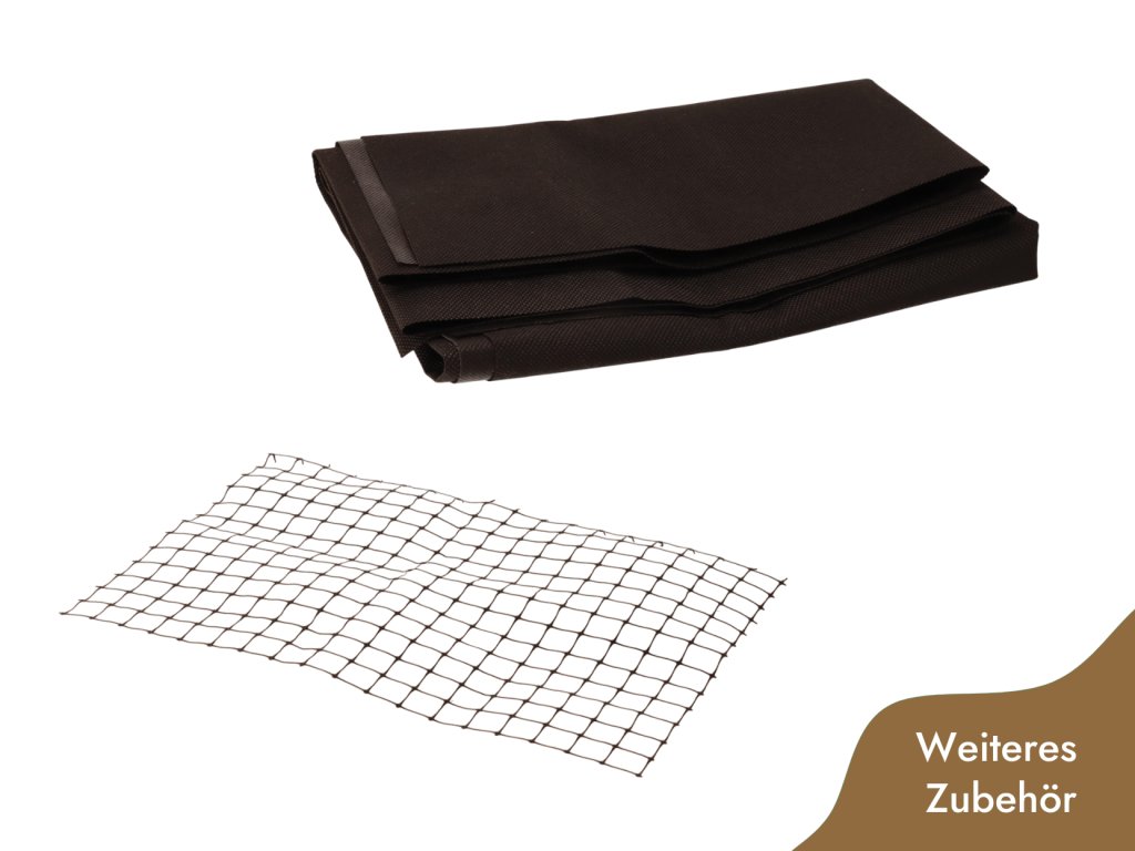 Zum Hochbeet aus Holz können Sie bei uns Vlies oder ein Netz gegen Nagetiere kaufen. Dies erhöht den Schutz der Ernte vor Gartenschädlingen und reduziert das Unkrautwachstum auf ein Minimum.