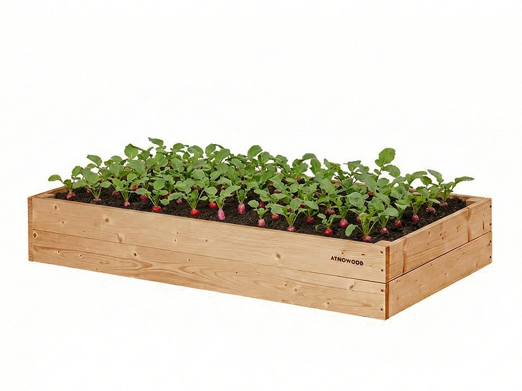 Das hölzerne Hochbeet der Marke ATMOWOOD ermöglicht komfortables Gärtnern mit höheren Erträgen und minimalem Aufwand. Dank des robusten Lärchenholzes erhalten Sie nicht nur eine schöne, natürliche Optik, sondern auch ein Beet, das jahrelang hält, ohne an Qualität einzubüßen.