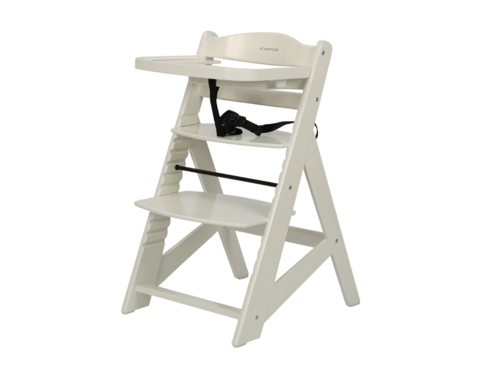 Der weiße Esszimmerstuhl aus Holz von AtmoWood ist eine praktische und elegante Lösung für ein sicheres Essen der Kleinsten. Dank seines leichten Designs passt er sich harmonisch jeder Einrichtung an und bietet Stabilität, Komfort sowie einfache Pflege.