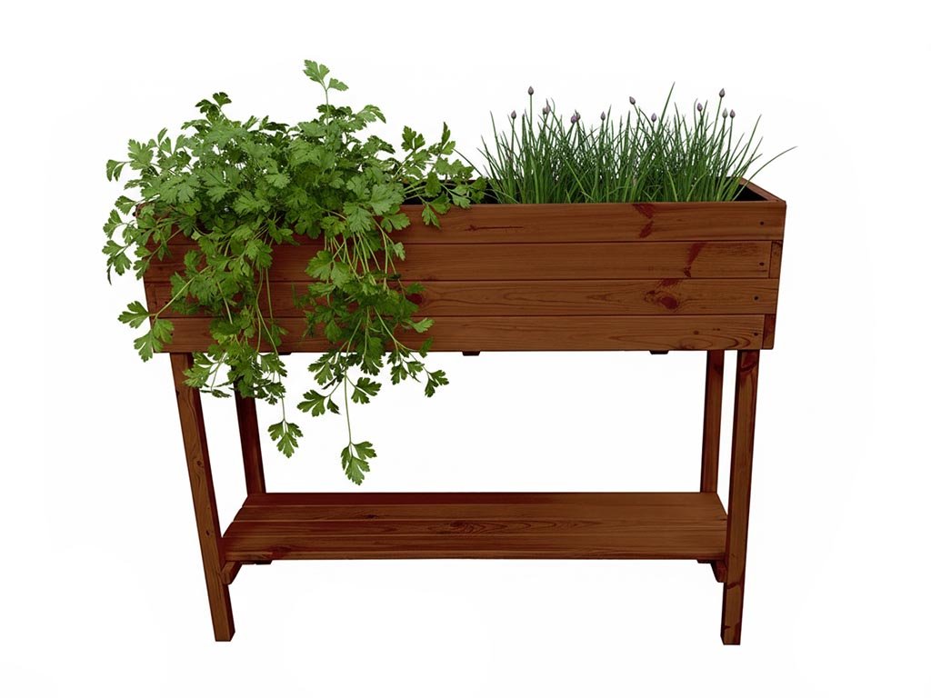 - Die Maße des zusammengesetzten Blumenkastens betragen 120 x 40 x 80 cm