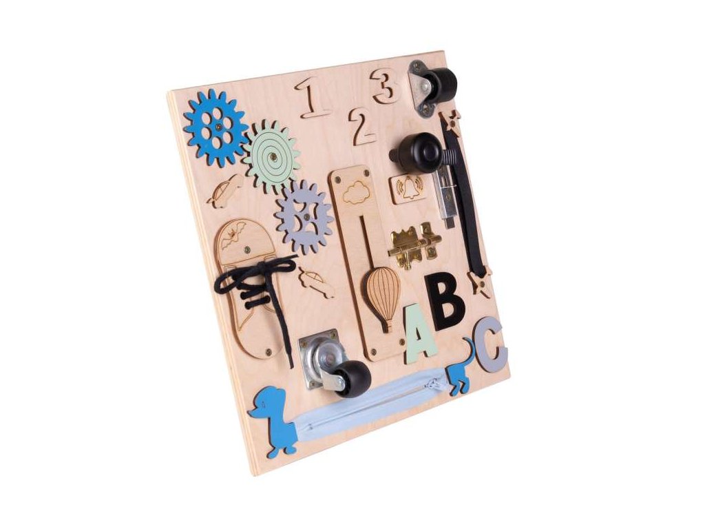 Das Manipulationsbrett aus Holz ist ein Spielzeug, , das die richtige Entwicklung der Feinmotorik gewährleistet und viel Spaß garantiert. Führen Sie Ihr Kleinkind sicher an Alltagsgegenstände heran.