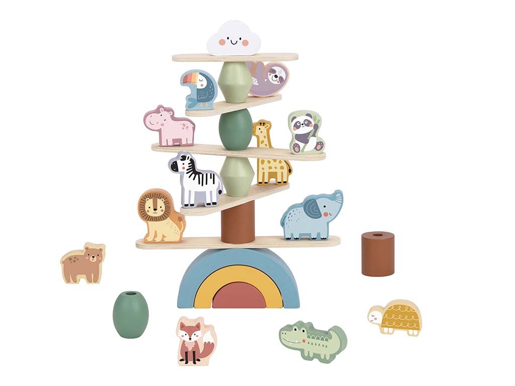 Der Balancierturm aus Holz mit Tieren bereitet Kindern Freude, Spannung und jede Menge Spaß. Ganz nebenbei lernen sie Geduld und verbessern ihre Koordination sowie Konzentration.
