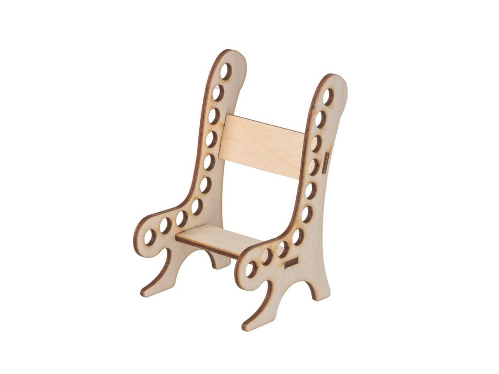 Holzständer für Buntstifte und Bleistifte in Form einer Bank. Der Buntstifthalter ist für das Kinderzimmer auf dem Schreibtisch oder als Dekoration auf dem Regal geeignet.