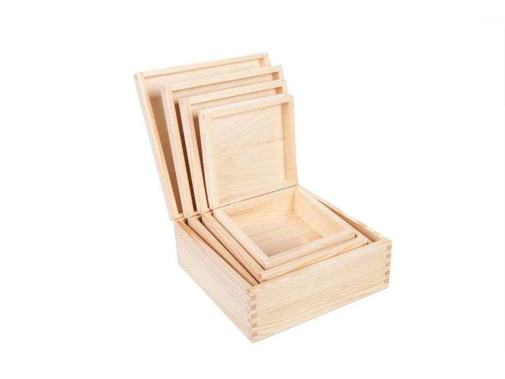 Das Set aus 4 Holzboxen erfüllt alle diese Anforderungen perfekt. Sie erhalten eine stilvolle Box, die sich perfekt im Regal macht. Doch damit ist die Verwendung der Boxen noch nicht zu Ende. Sie können sie als Geschenkverpackung oder als Aufbewahrungsort für Schmuck, Kinderspielzeug oder ein Memo-Spiel verwenden.