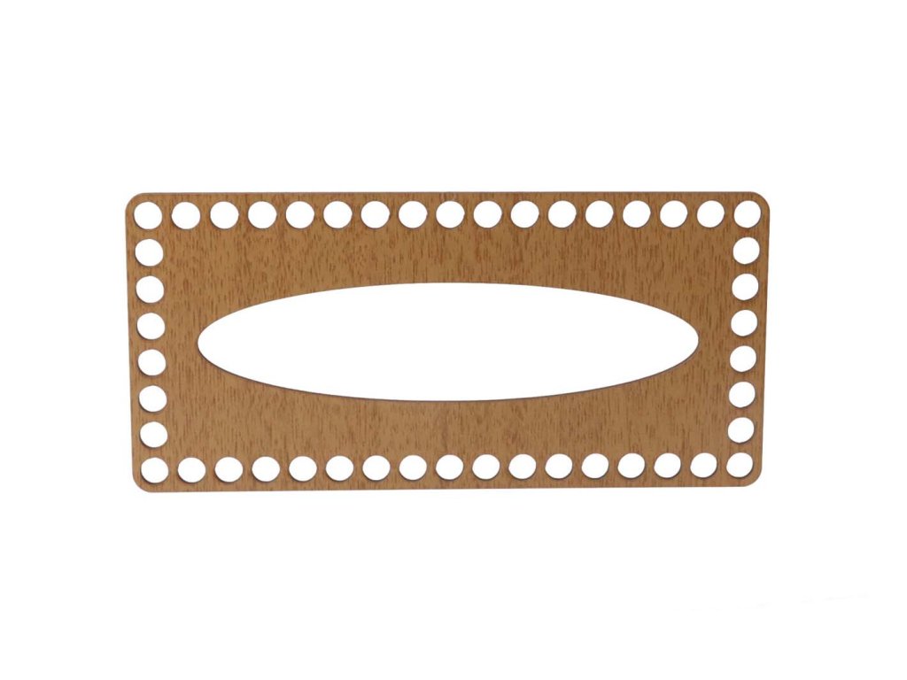 Wir bieten einen Deckel für Taschentücher mit Eichendekor und Löchern mit einem Durchmesser von 9 mm in verschiedenen Größen an. Es eignet sich zur Herstellung von Häkeldekorationen aus Zwirnen und Zwirnen.