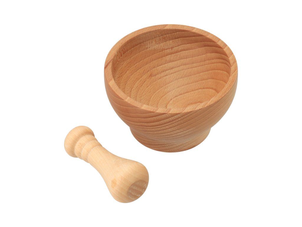 Der Mörser aus Buchenholz eignet sich besonders zum Zerkleinern von Kräutern, Nüssen und Gewürzmischungen, die so ihr Aroma perfekt entfalten können.