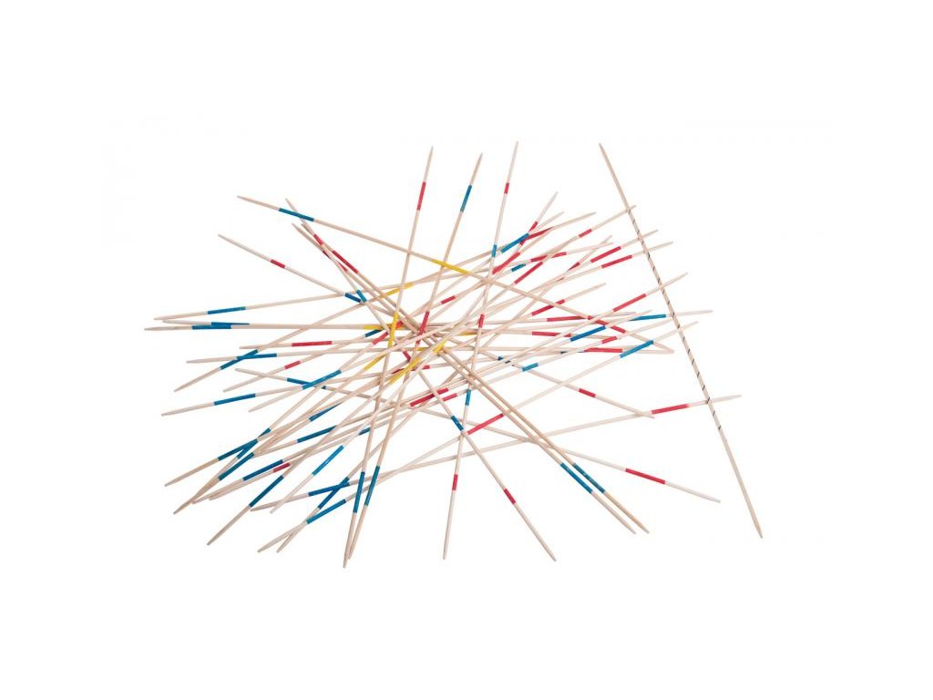 Mit diesem Holzmikado können Sie viel leichter feststellen, ob sich einer der Stäbchen bewegt hat oder nicht.