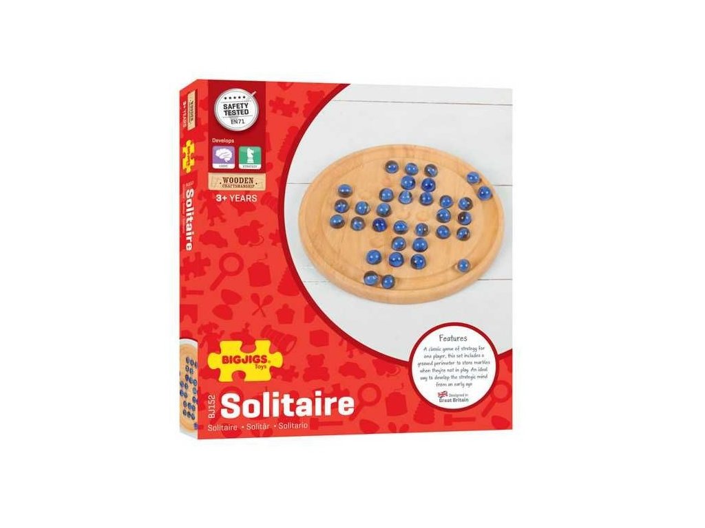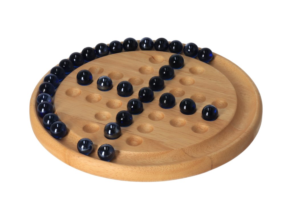 Solitaire ist ein Denkspiel für einen Spieler. Das Spielbrett hat zu Beginn des Spiels ein Kreuz aus Kugeln und ein leeres Feld in der Mitte.