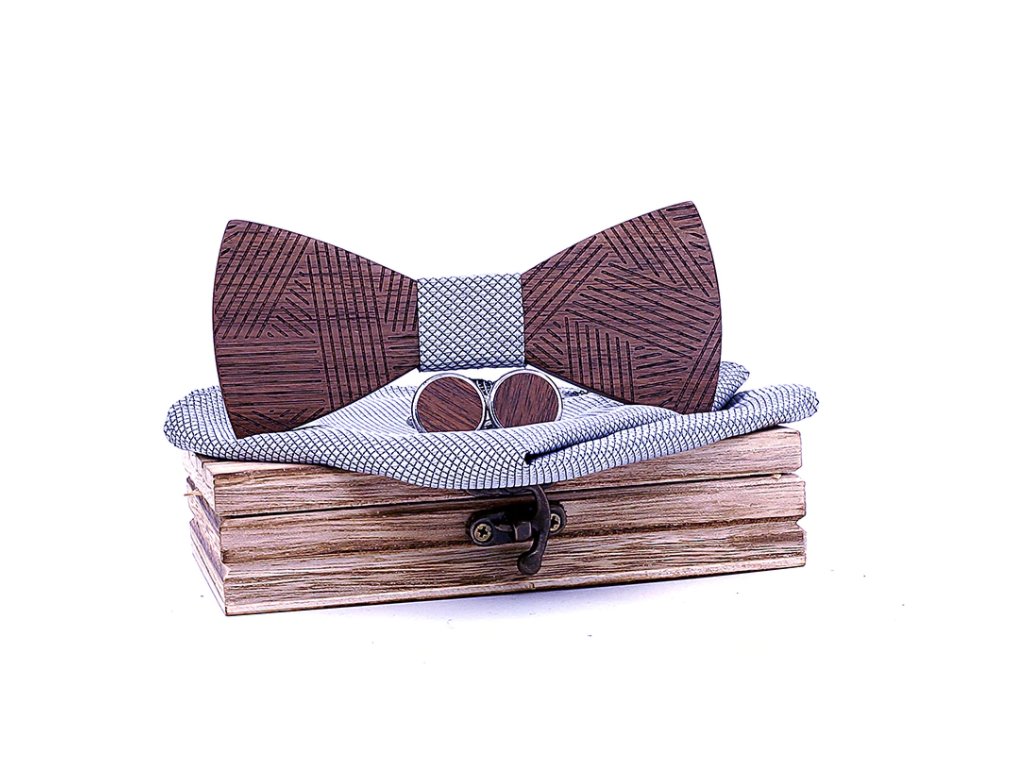 Die Holzfliege aus rohem Holz mit frischem Design findet in jeder Herrengarderobe einen Platz.
