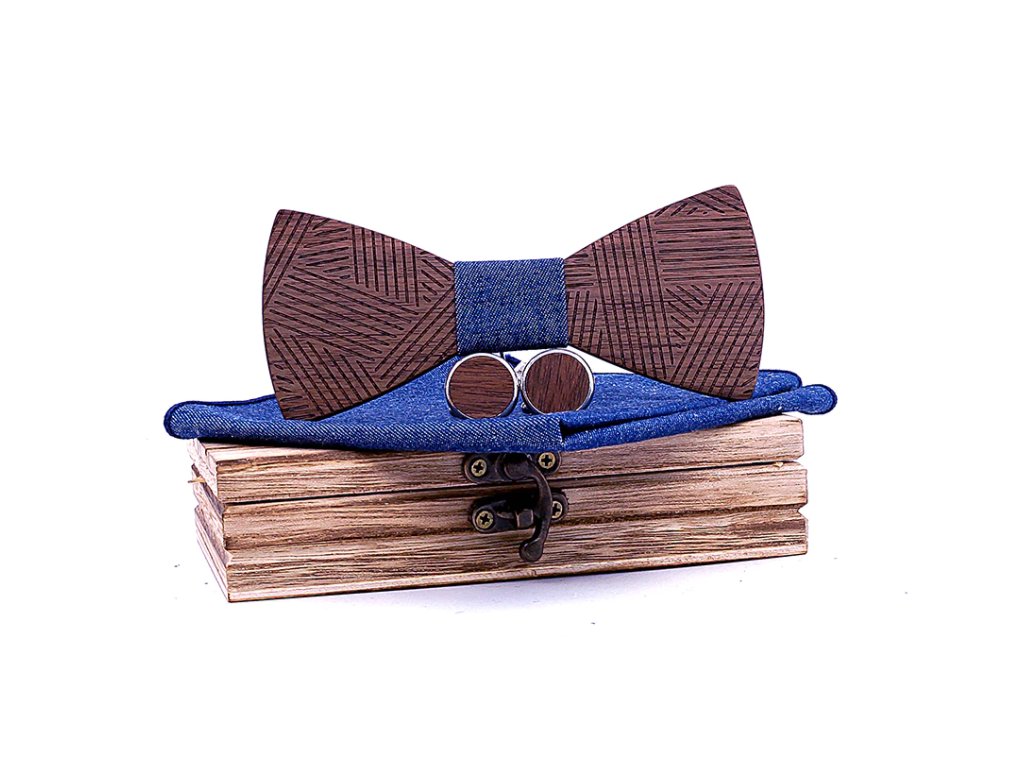 Die Holzfliege aus rohem Holz mit frischem Design findet in jeder Herrengarderobe einen Platz.