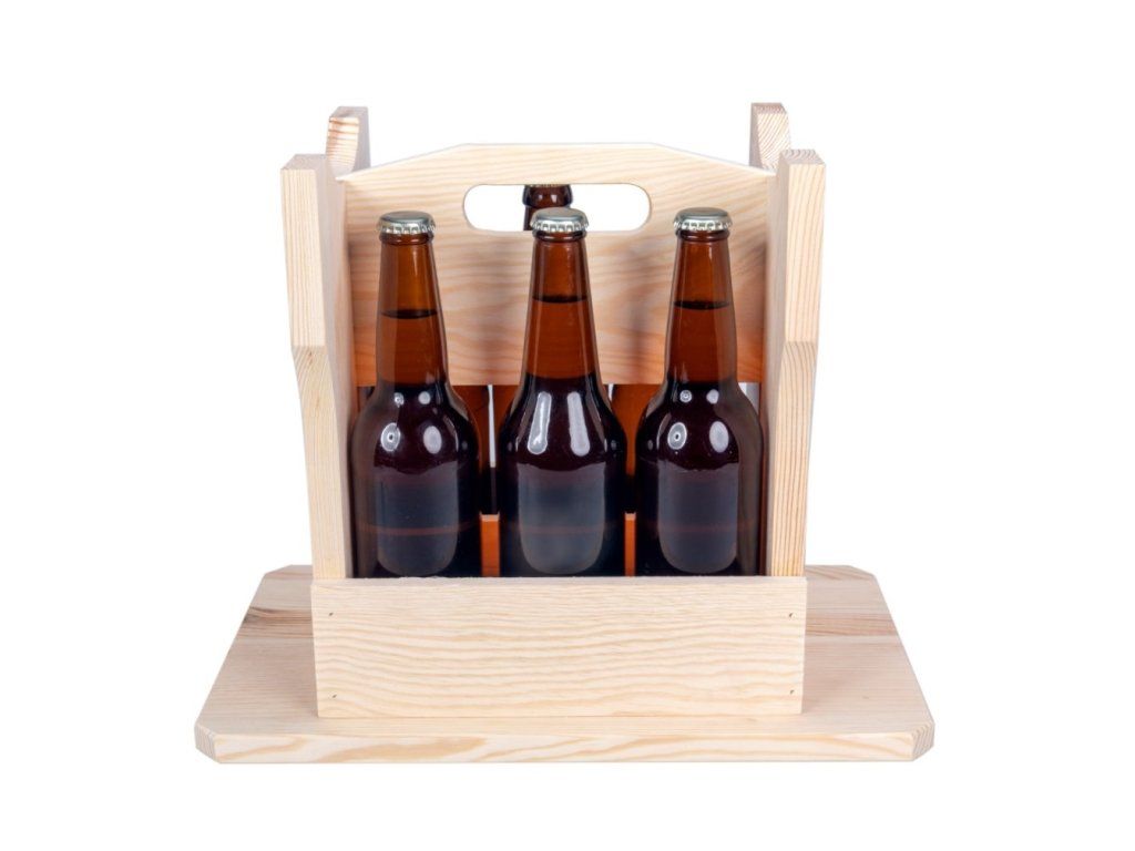 Wir präsentieren einen bequemen und praktischen Hocker aus Holz, der als Träger für Flaschen oder andere Gegenstände verwendet werden kann. Ideal für Urlaub, Camping oder Sommerausflüge.