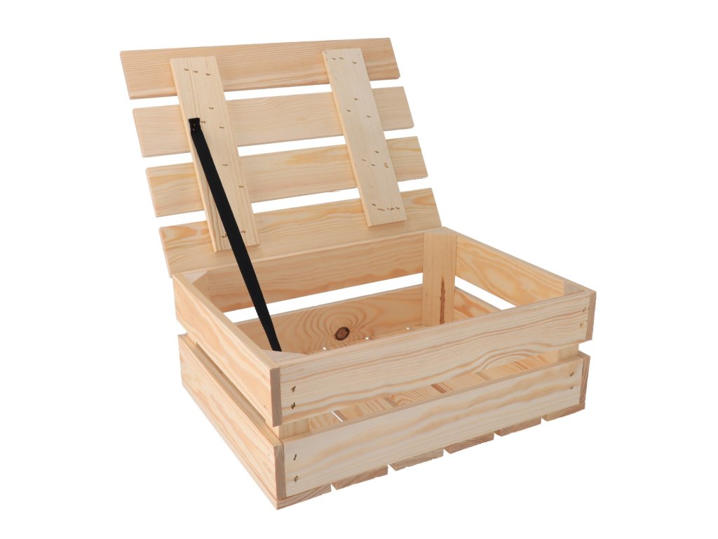 Die Kiste ist aus Kiefernholz gefertigt und bietet eine Vielzahl von Einsatzmöglichkeiten. Sie können darin nicht nur Spielzeug oder Werkzeug aufbewahren, sondern sie auch als Sitzgelegenheit oder Tisch nutzen.