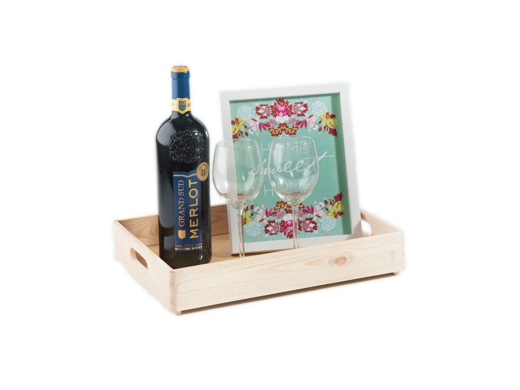 Die natürliche Holzkiste eignet sich hervorragend zum Transportieren von Kleinigkeiten oder als Tablett für das Bett.