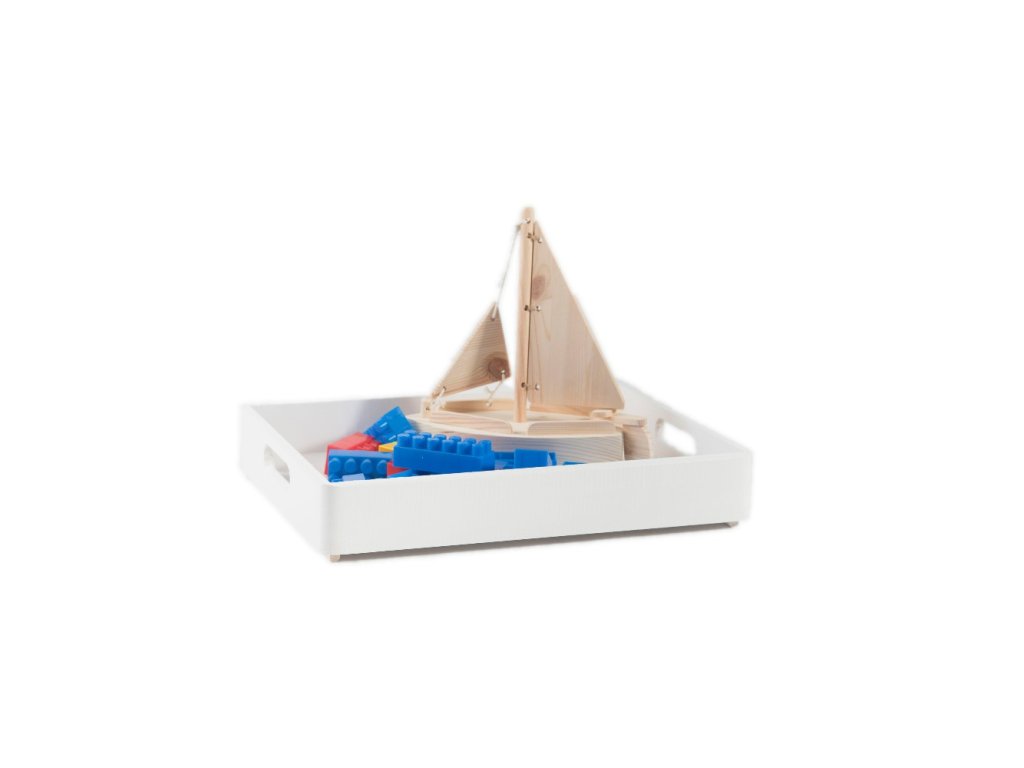 Die weiße Holzkiste eignet sich hervorragend als Tablett zum Transportieren von Kleinigkeiten, aber auch zur Aufbewahrung verschiedener Dinge.