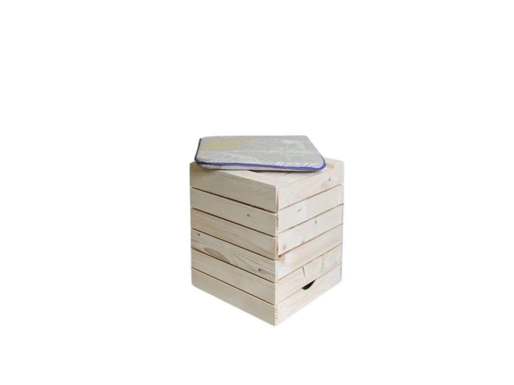 Die Holzkiste ist bereits montiert. Das Sitzpolster aus Stoff ist nicht enthalten.