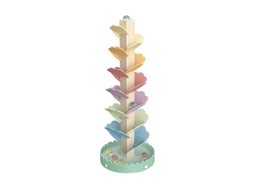 Der originelle Holzturm begeistert Kinder auf den ersten Blick mit seinen bunten Blättern und dem zauberhaften Soundeffekt. Einfach die Kugel oben loslassen und beobachten, wie sie sanft nach unten rollt, wobei jedes Blatt einen anderen Ton erzeugt.