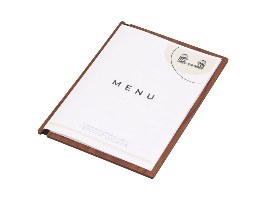 Das A4-Holz-Menübrett aus amerikanischem Nussbaum-Sperrholz sieht auf dem Tisch nicht nur gut aus, sondern ist auch sehr praktisch, leicht und nimmt nicht so viel Platz ein wie herkömmliche Speisekarten.