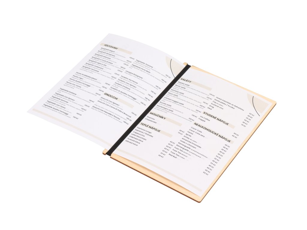 Drucken Sie einfach die Speisekarte aus und stecken Sie sie unter dem festen Gummi ein. Wenn sie verschmutzt oder beschädigt wird, können Sie sie sofort durch eine neue ersetzen, so dass jeder Kunde eine elegante Speisekarte erhält.