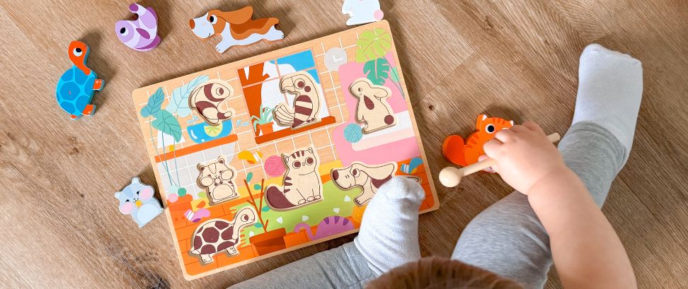Holzpuzzles und Steckspiele für Kinder