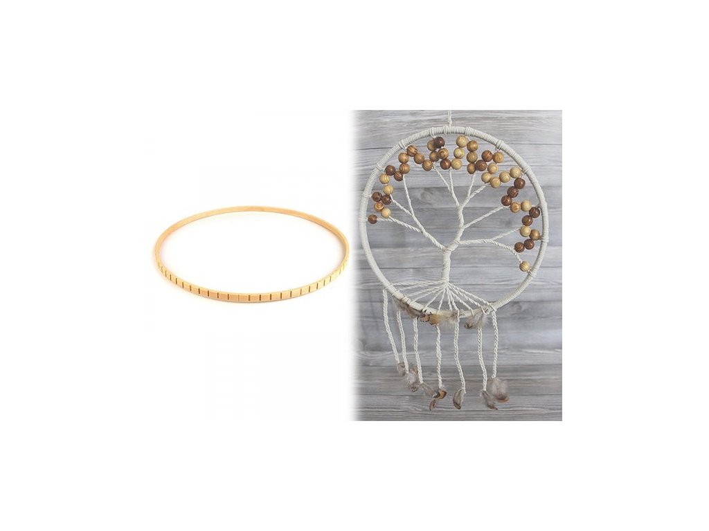 Der Holzring mit Einkerbungen aus Buchenholz kann für die Herstellung von Traumfängern, Glockenspielen und anderen Dekorationen in Makramee-Technik verwendet werden.