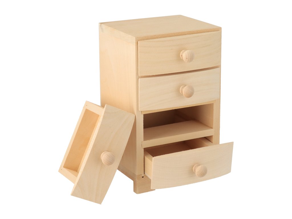 Kleiner Holzschrank mit vier passgenauen Schubladen aus Lindenholz.