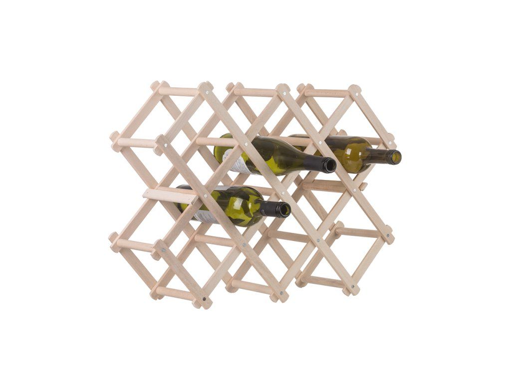 Holzständer für mehrere Weinflaschen, der sich durch sein luftiges Design und seine gute Stabilität auszeichnet.