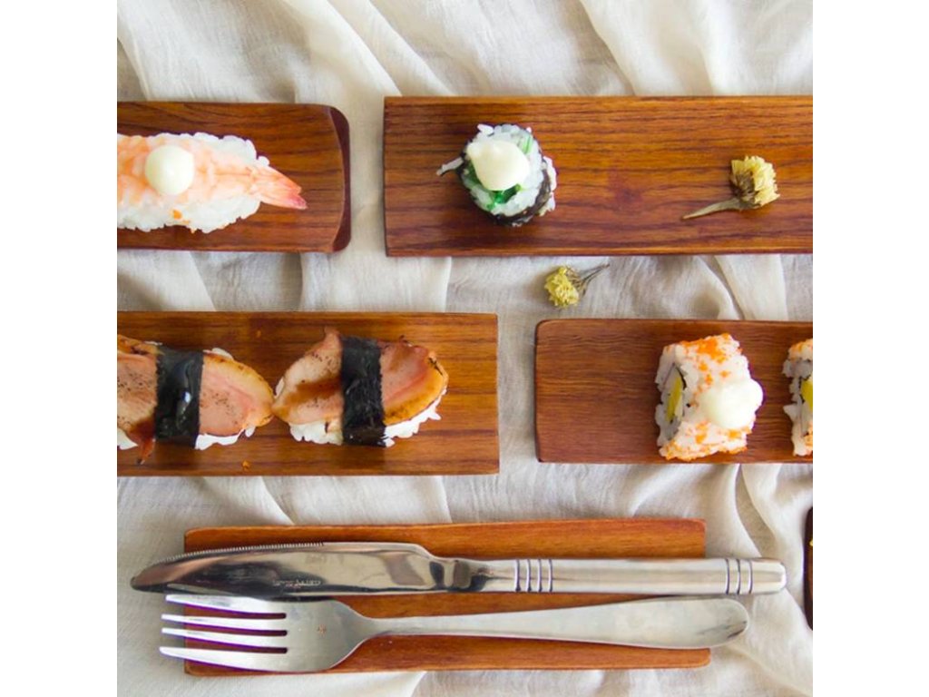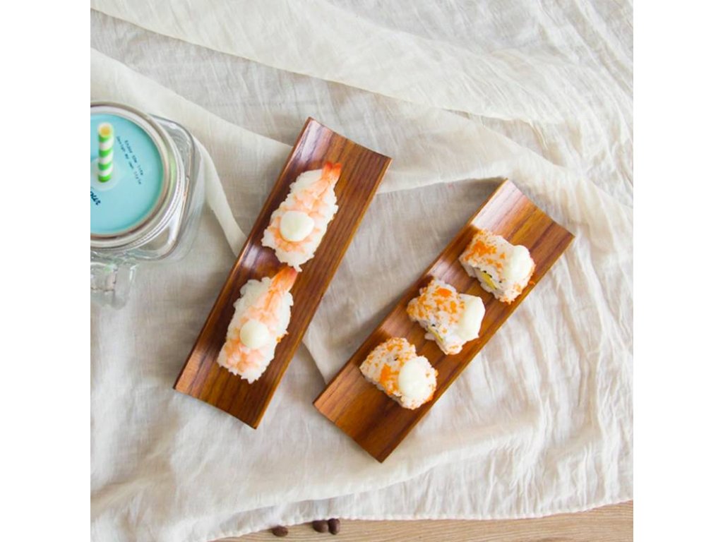 Ein Holztablett, das Ihr Lieblings-Sushi beim Servieren wunderbar ergänzt.