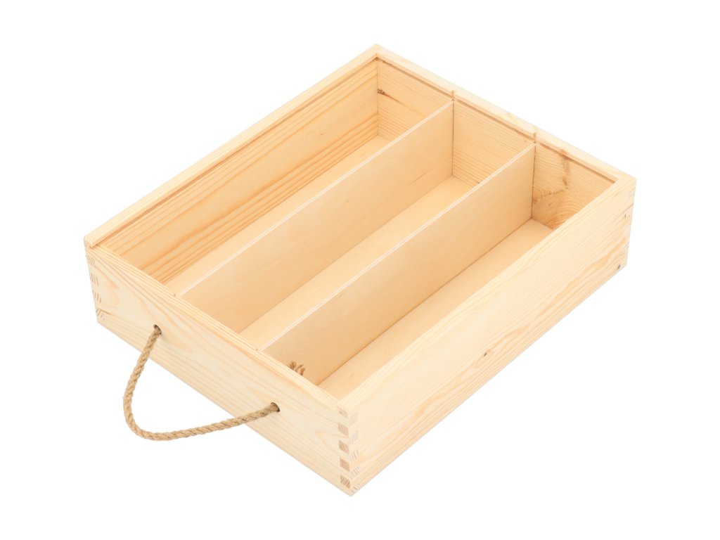Die Geschenktruhe für 3 Weinflaschen aus Kiefernholz eignet sich für alle, die ihre Liebsten stilvoll beschenken wollen.