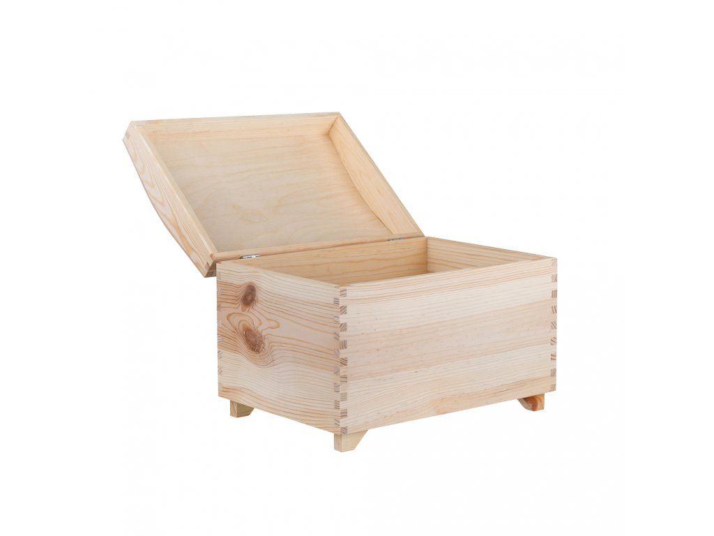 Die Truhe ist aus Kiefernholz gefertigt und unbehandelt.