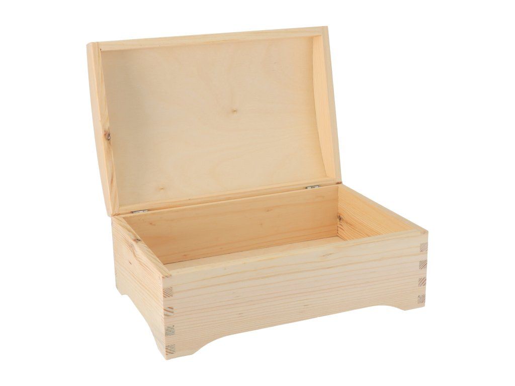 Die sorgfältig gefertigte Holztruhe wird alle Holzliebhaber und Kinder, die ihre Geheimnisse und Schätze gerne vor neugierigen Eltern verstecken, begeistern.