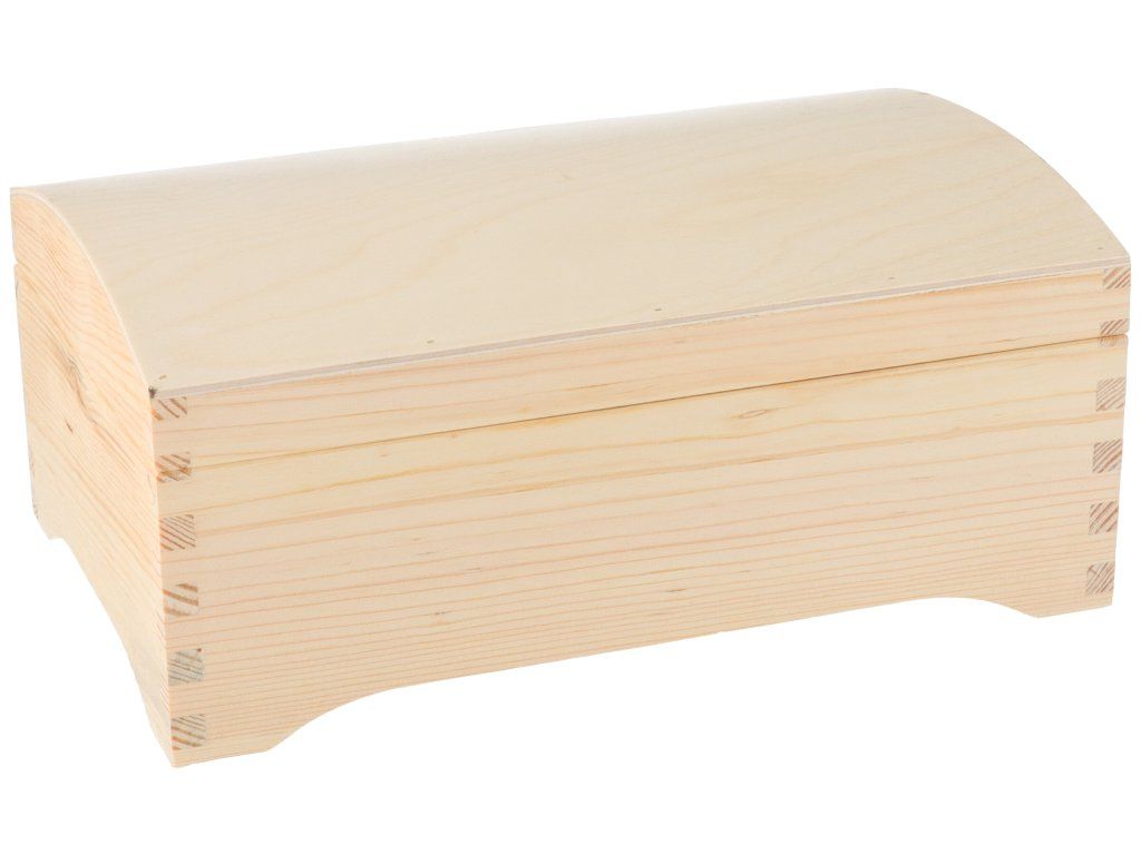 Die Truhe aus hochwertigem Kiefernholz eignet sich mit ihren Maßen perfekt zur Aufbewahrung von Schmuck, geheimen Schätzen oder kleinem Kinderspielzeug wie einem Memo-Spiel oder Lego.