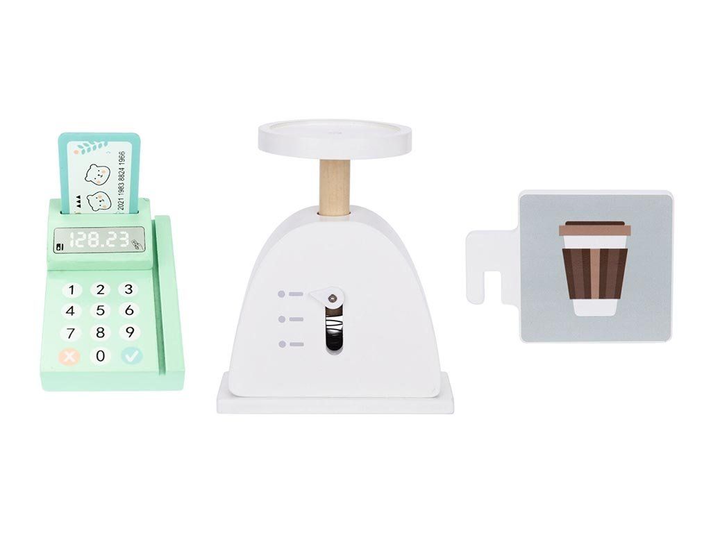 Der Verkaufsstand bietet ausreichend Platz zum Präsentieren und Verkaufen von Waren. Kinder können Kunden bedienen und dabei spielerisch die Grundlagen der Kommunikation sowie des einfachen Zählens erlernen. So werden Kreativität, soziale Kompetenzen und logisches Denken auf natürliche Weise gefördert.