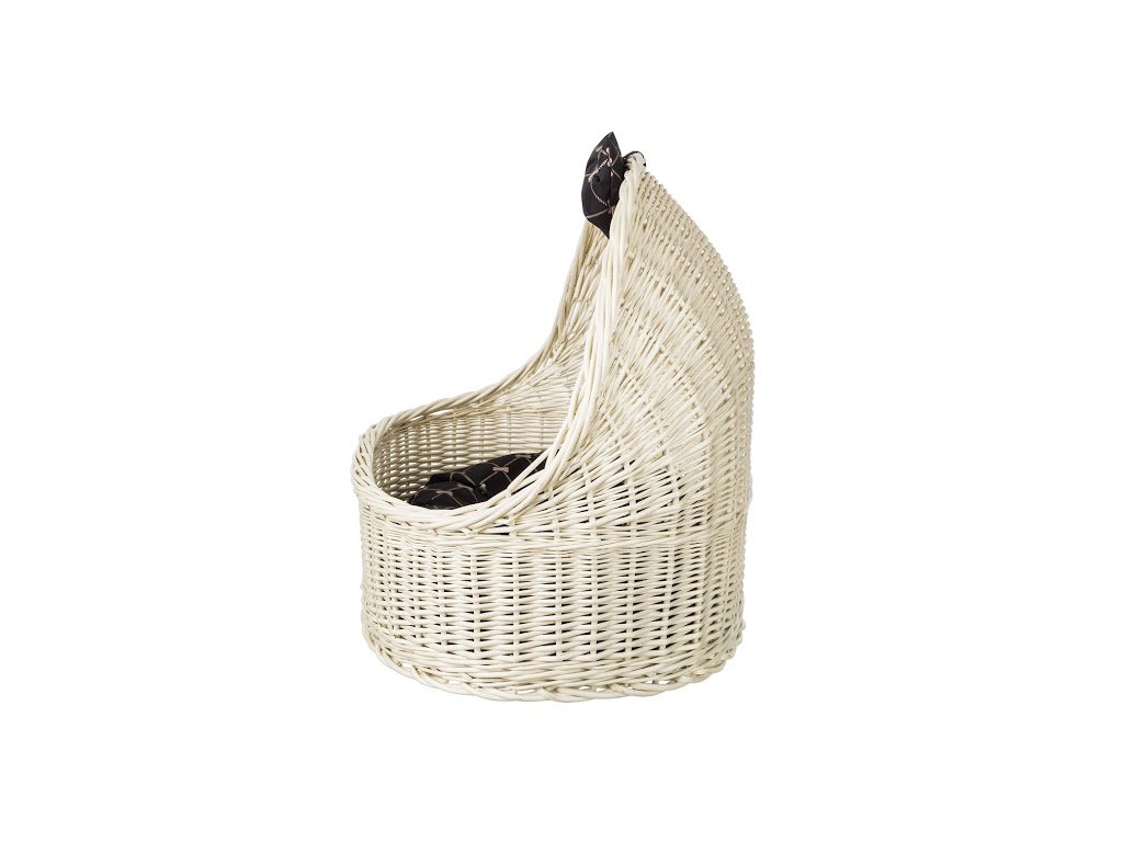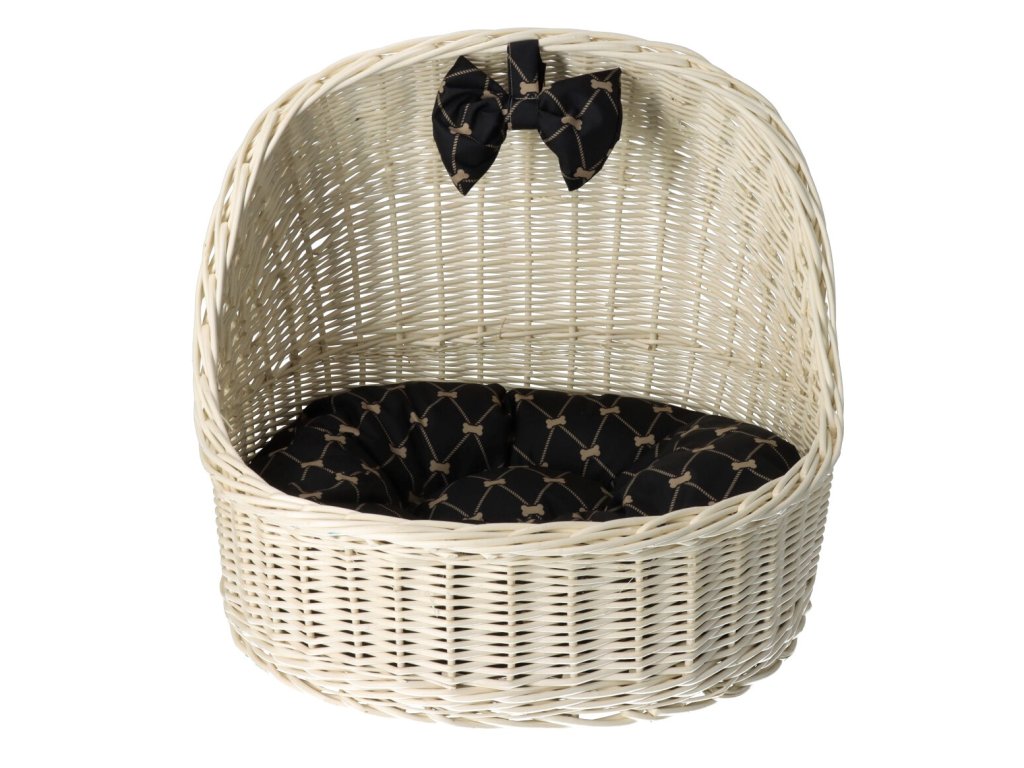 Hundebett aus Weide mit Baldachin – weiß mit schwarzer Schleife
