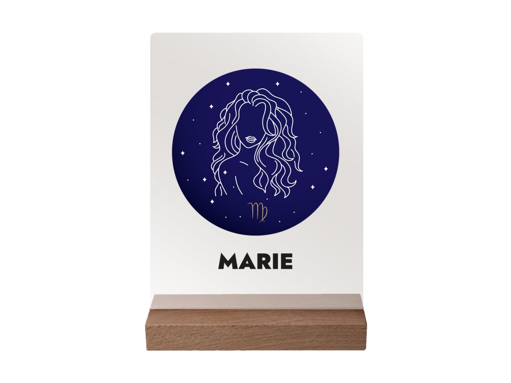Ihr Sternzeichen mit Ihrem Namen auf Acrylglas- dunkler Ständer