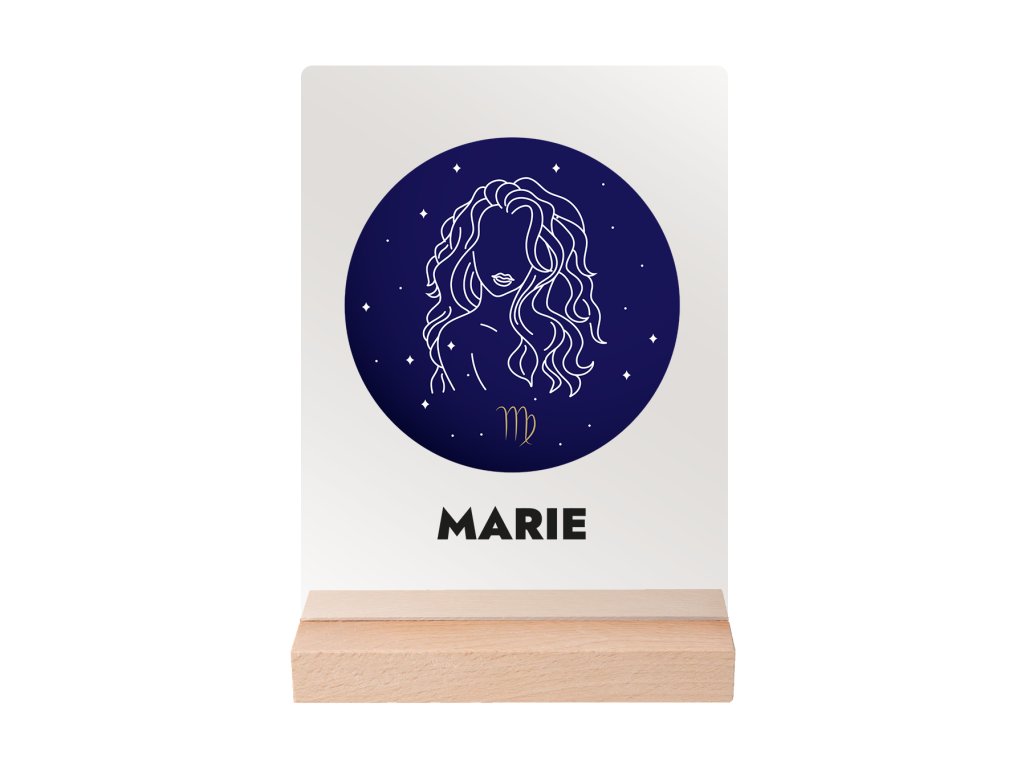 Ihr Sternzeichen mit Ihrem Namen auf Acrylglas - heller Ständer