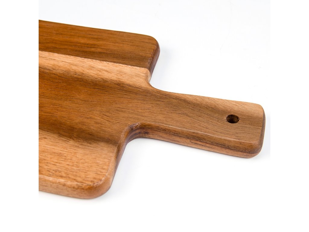 Akazienholz besticht durch seine Härte, Langlebigkeit und die schöne, natürliche Maserung, wodurch jedes Schneidebrett zu einem Unikat wird. Seine Oberfläche ist pflegeleicht und verleiht jedem Essbereich eine warme, rustikale Note.